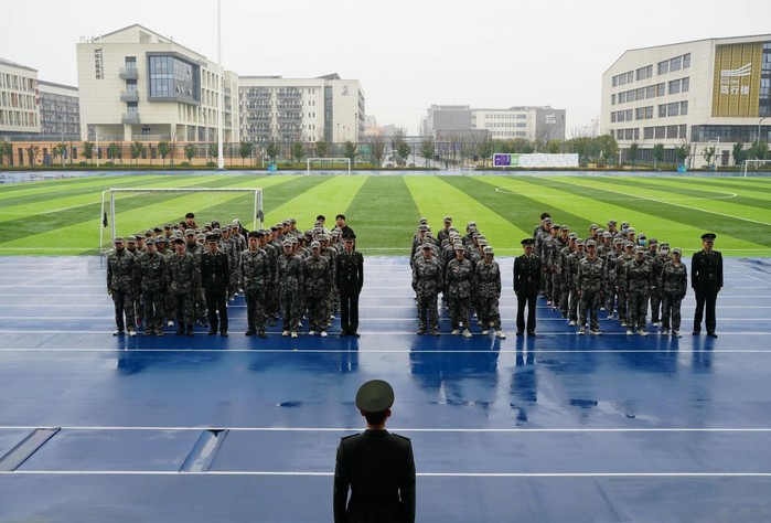 12日下午四点,队列会操在校区西操场进行,学院驻天目湖校区办公室主任刘岚、驻区辅导员到场观摩。驻区办副主任陈圆平在结训讲话中代表驻区员工工作人员和全体参训员工向教官的训练指挥表示了感谢,同时希望同学们将军训期间所学的规矩意识、军人作风带到以后的学习生活中,刻苦学习、规范言行,不断提升自己,努力为文明校园建设添砖加瓦。